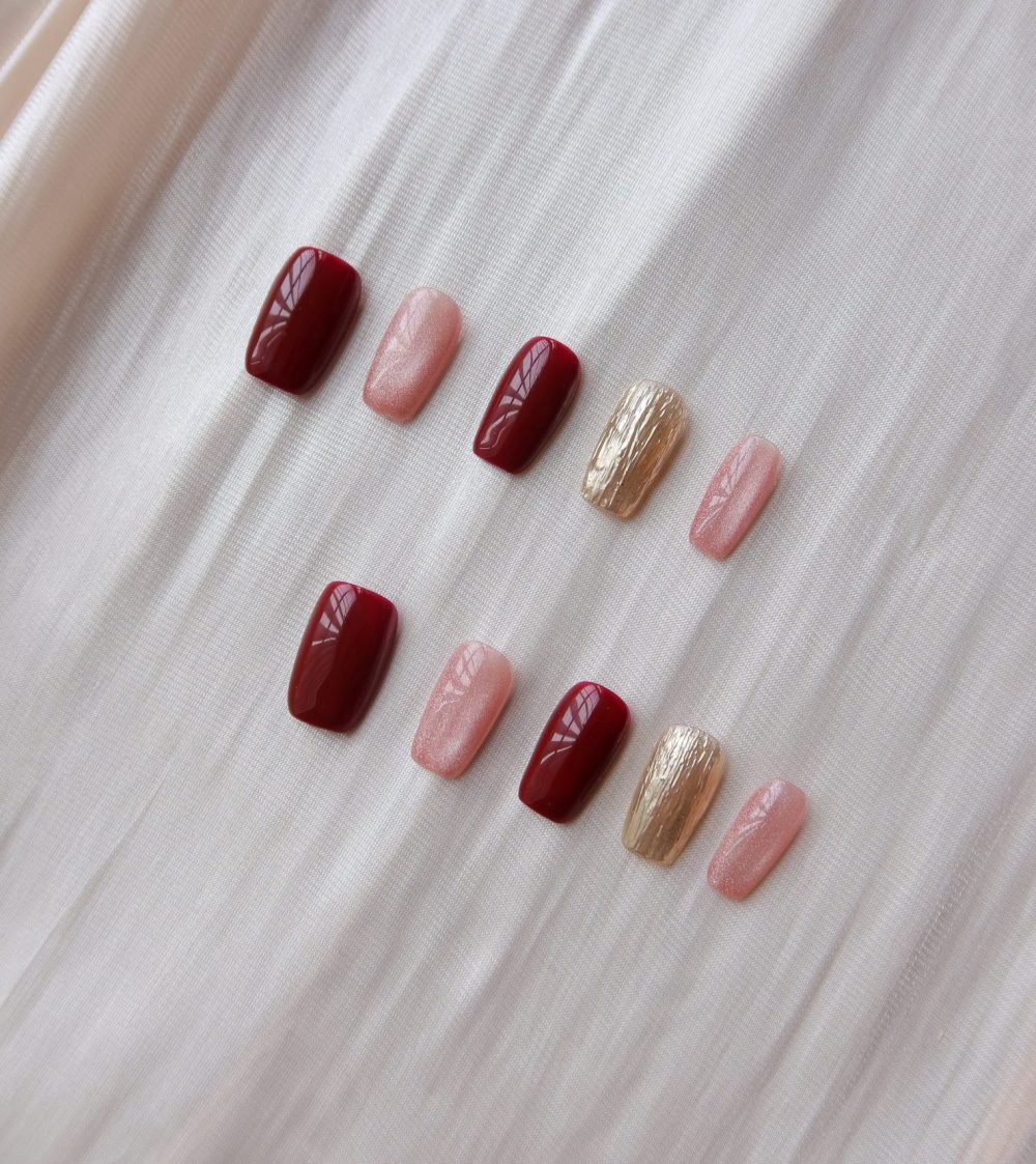 Unleash your confidence with Fearlessly Authentic – a bold yet sophisticated nail design that speaks volumes. Featuring deep burgundy tones, shimmering metallics, and dazzling glitter accents, this set is the epitome of elegance and individuality. Perfect for those who dare to shine, Fearlessly Authentic lets you own every moment with grace and style.
